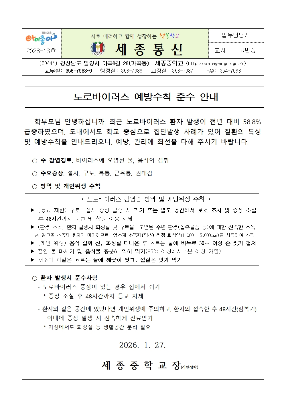 노로바이러스 예방수칙 준수 안내 가정통신문(세종중).pdf