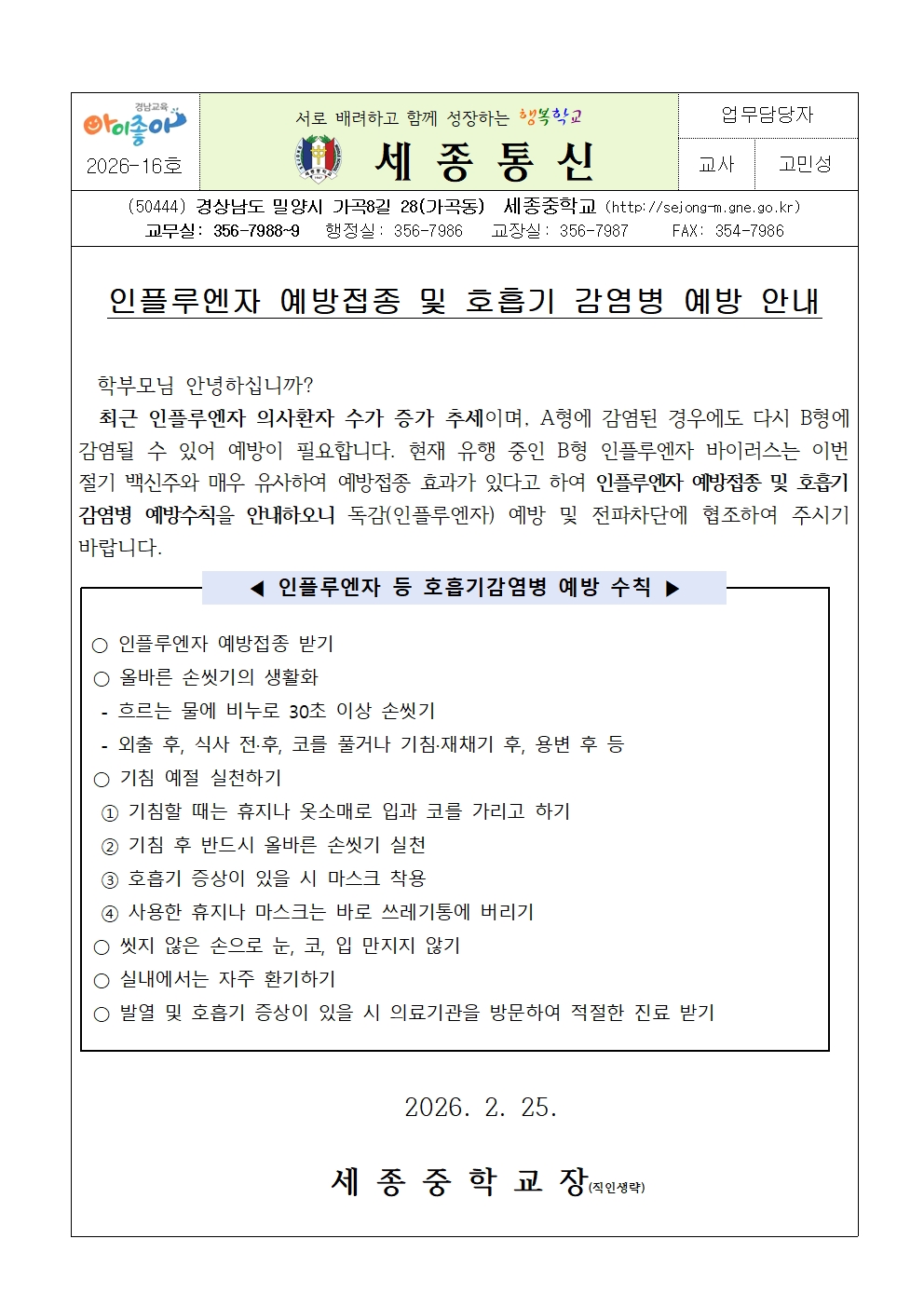 인플루엔자 예방접종 및 호흡기감염병 예방안내 가정통신문(세종중).pdf