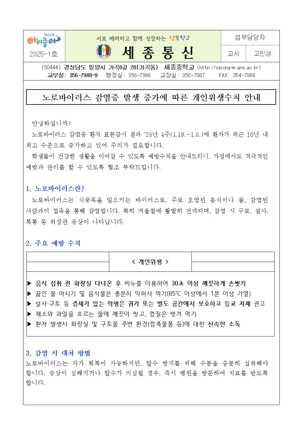 노로바이러스 감염증 발생 증가에 따른 개인위생수칙 안내(세종중).pdf