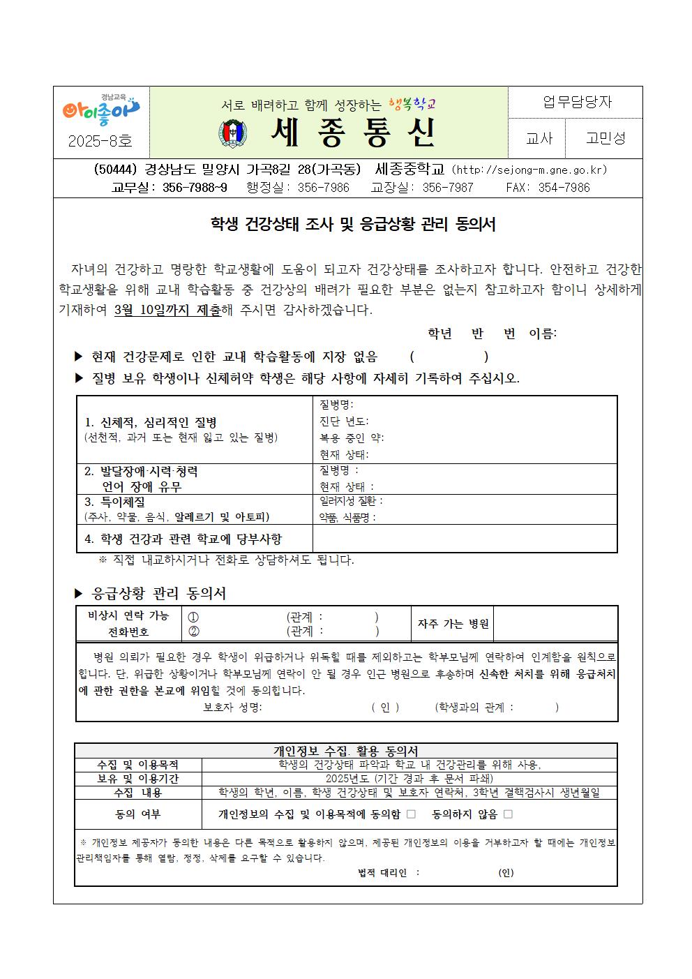 2025년 학생건강상태 조사 및 응급상황 관리 동의서 가정통신문(세종중).pdf