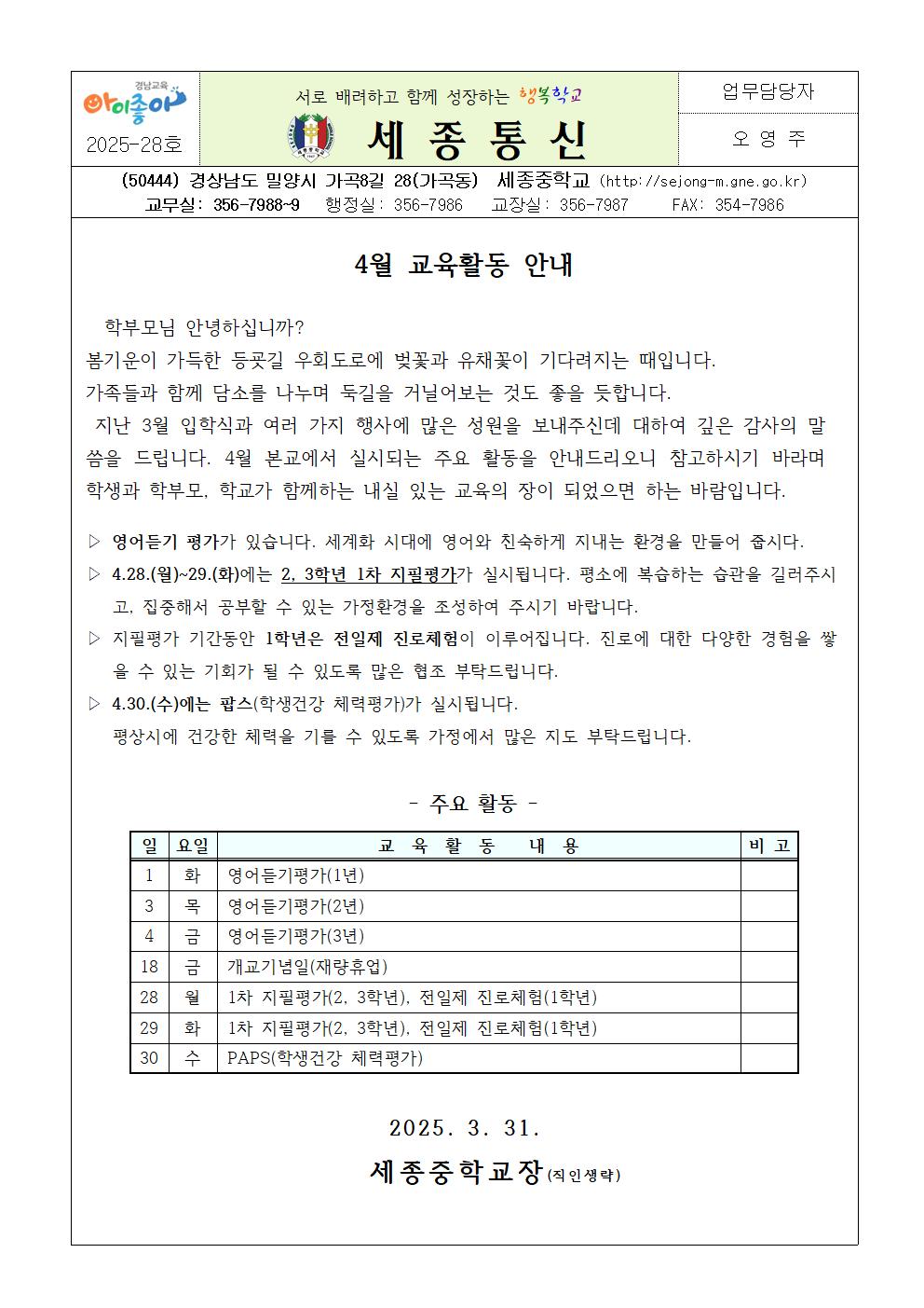 4월 교육활동 안내