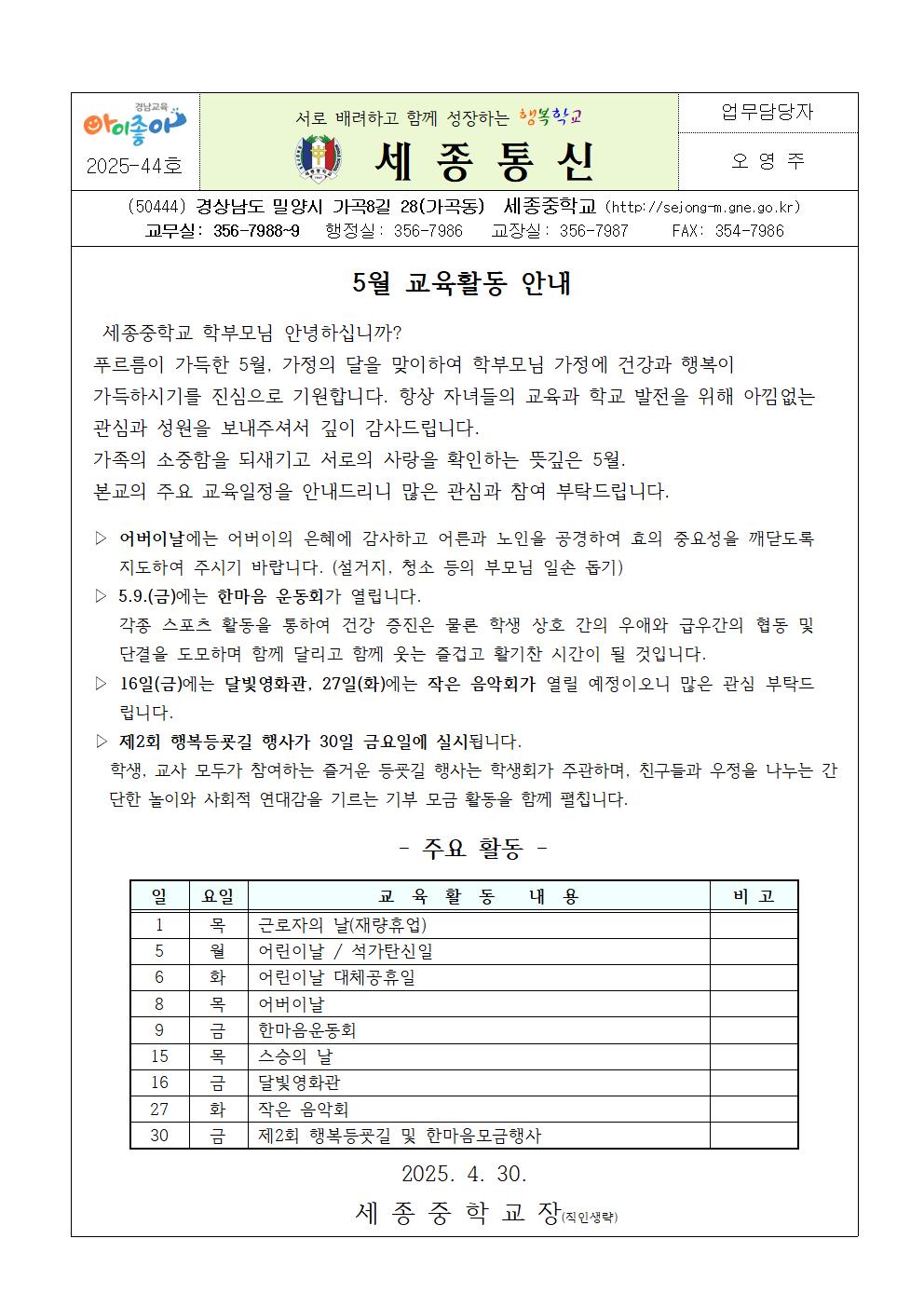 5월 교육활동 안내
