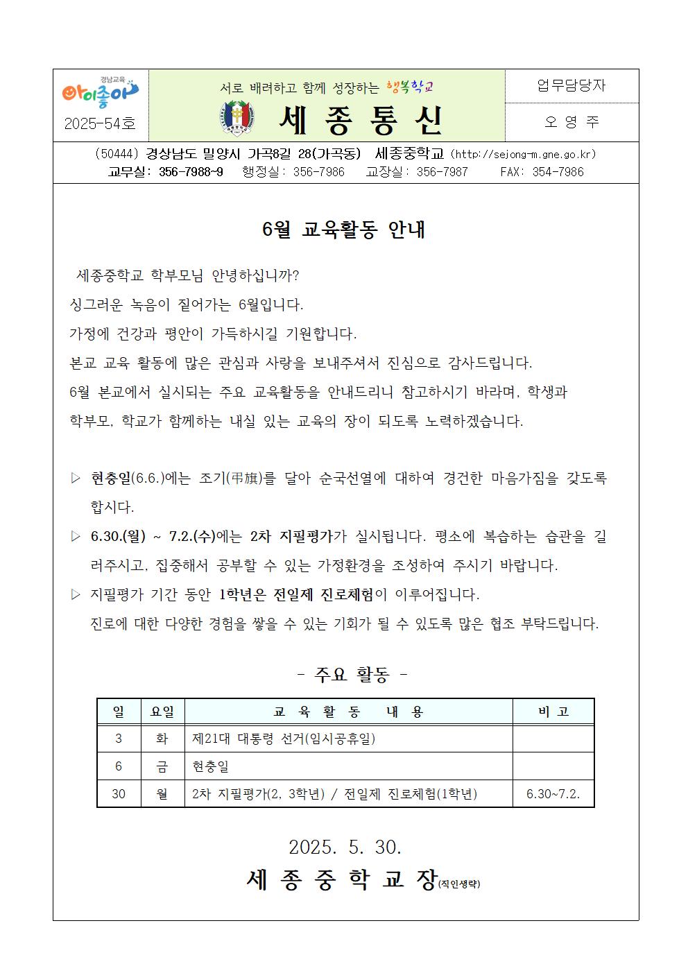 6월 교육활동 안내