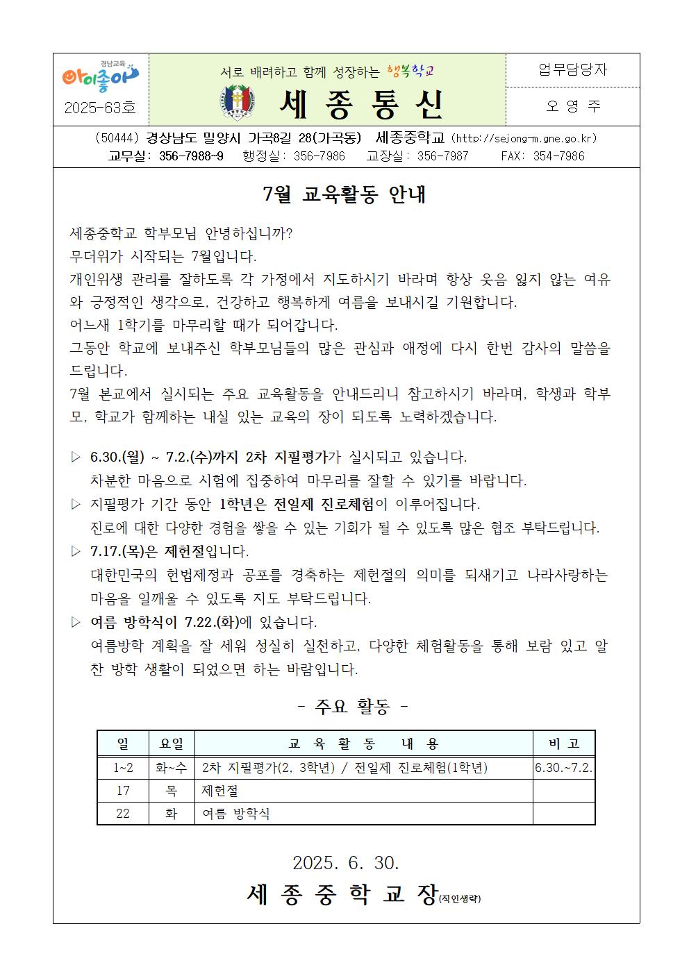 7월 교육활동 안내