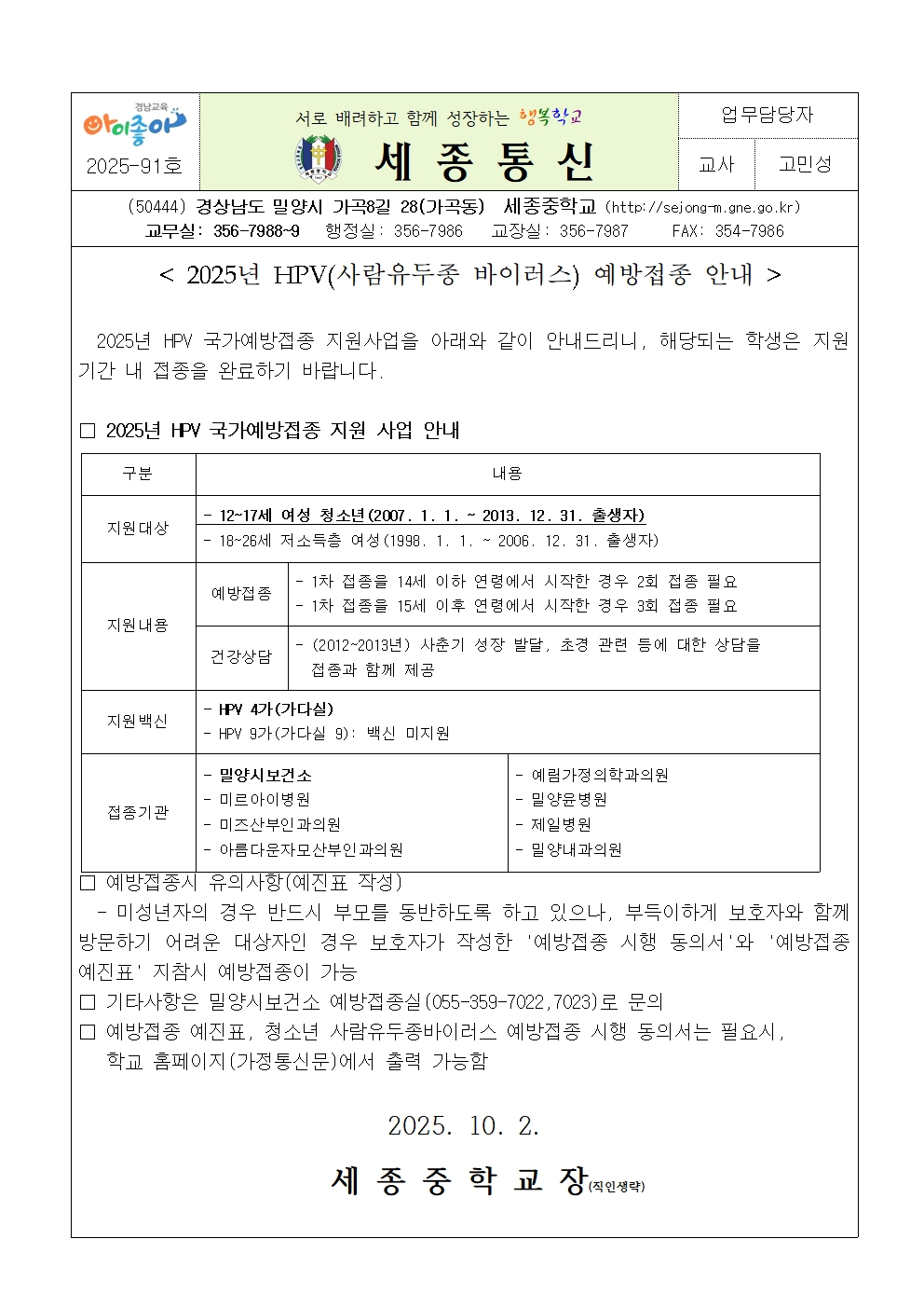 HPV(사람유두종 바이러스) 예방접종 안내 가정통신문(세종중).pdf