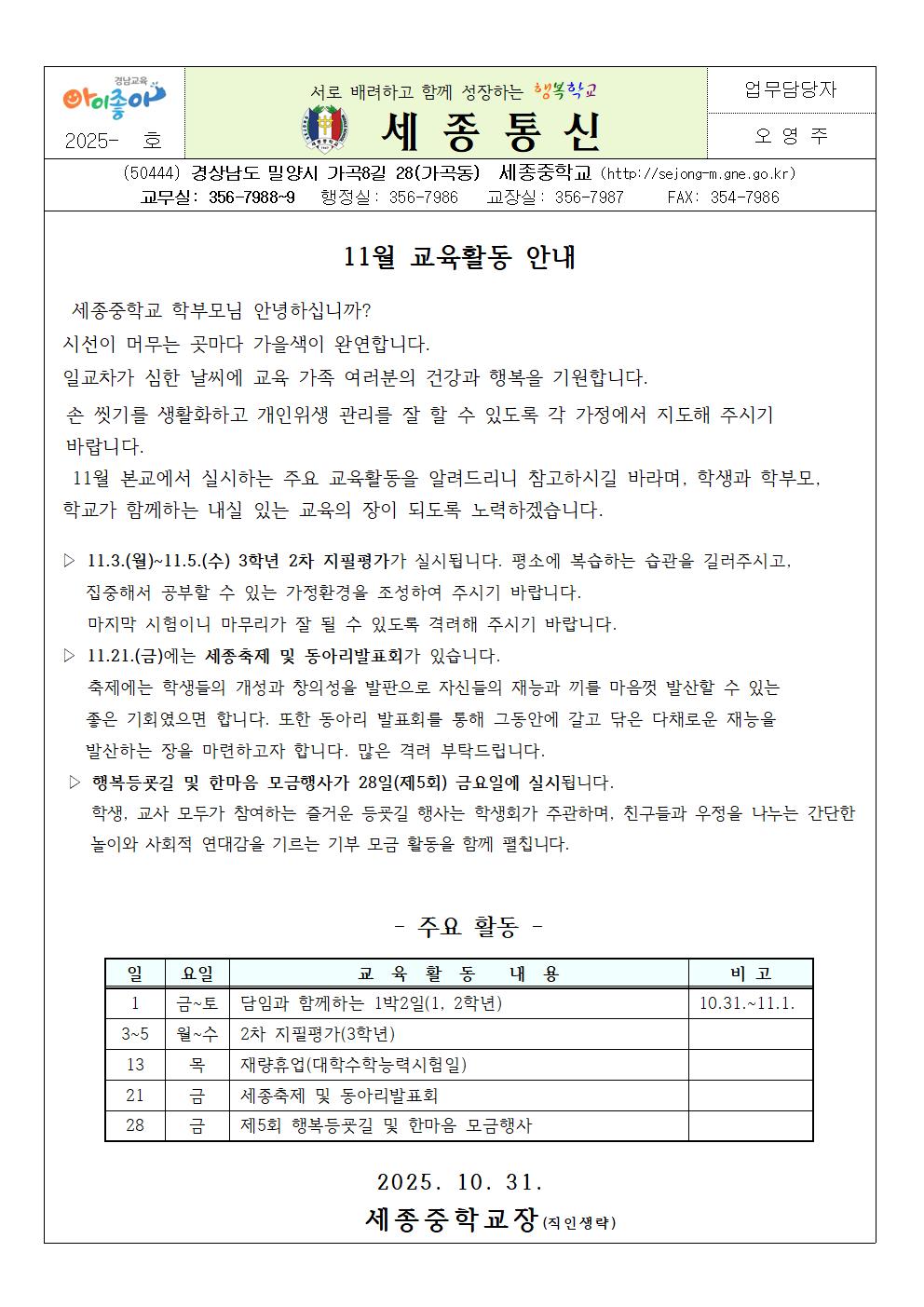 11월 교육활동 안내